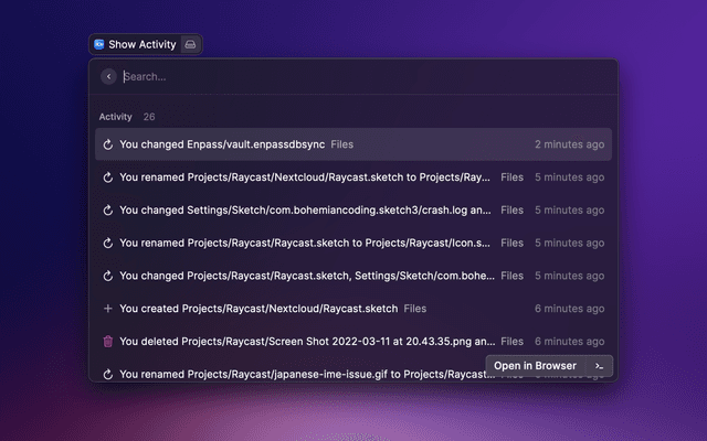 Search files, deck, notes, favorites and activity in Nextcloud.