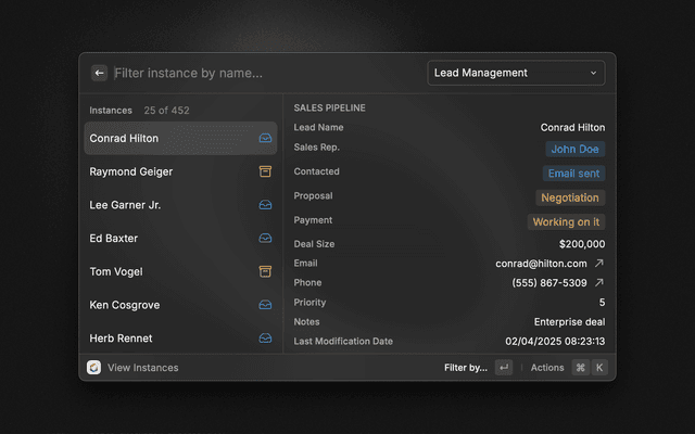 - Edit Instance: Update field values of an existing instance