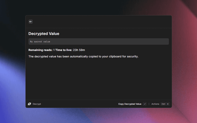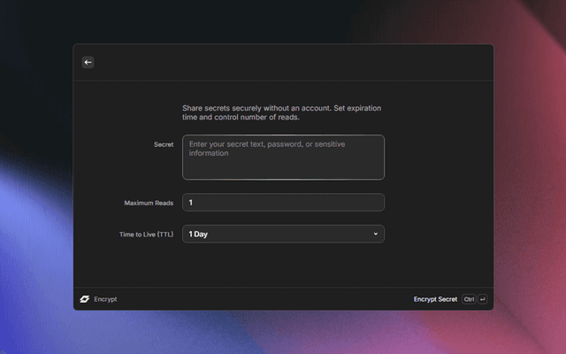 • Read Limits: Control how many times a secret can be accessed (1-100 reads)