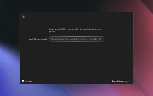 This is an extension for vault.shelve.cloud. Shelve makes it easy to securely share sensitive information such as passwords, API keys, or other secrets without requiring an account. Set expiration times, control read limits, and ensure encrypted transmission.