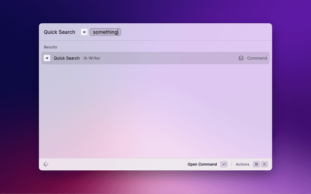 - Quick Search. Open quick search panel in iA Writer with queries.