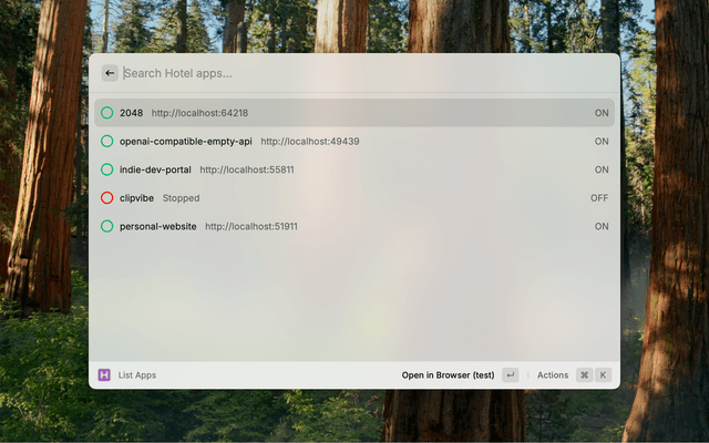 Manage your Hotel apps directly from Raycast.